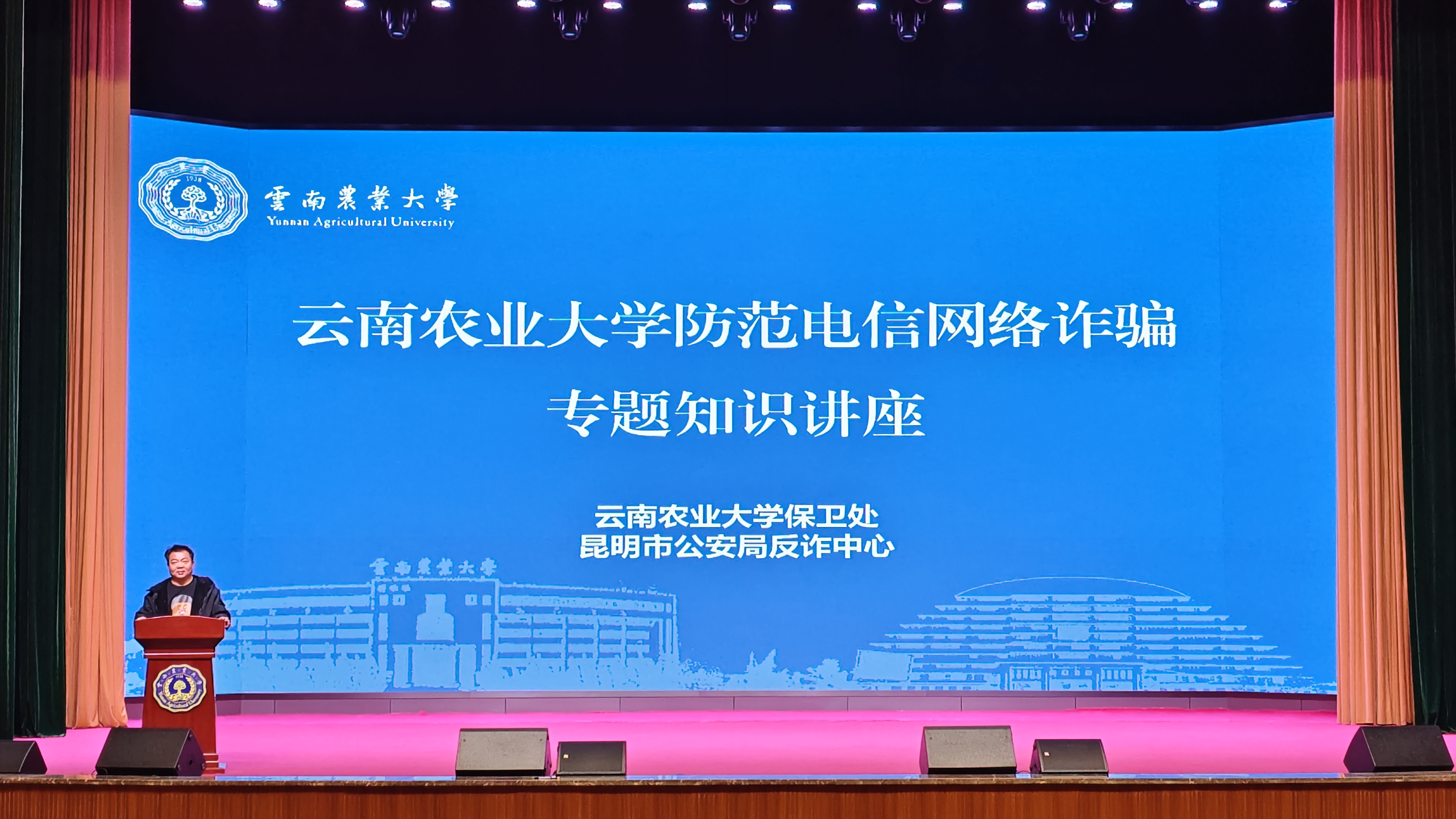 为深化宣传效果,2026年3月14日,保卫处特邀昆明市公安局反诈中心民警进校园,开展防范电信网络诈骗专题知识讲座,为师生带来一堂专业、实用的安全教育课。